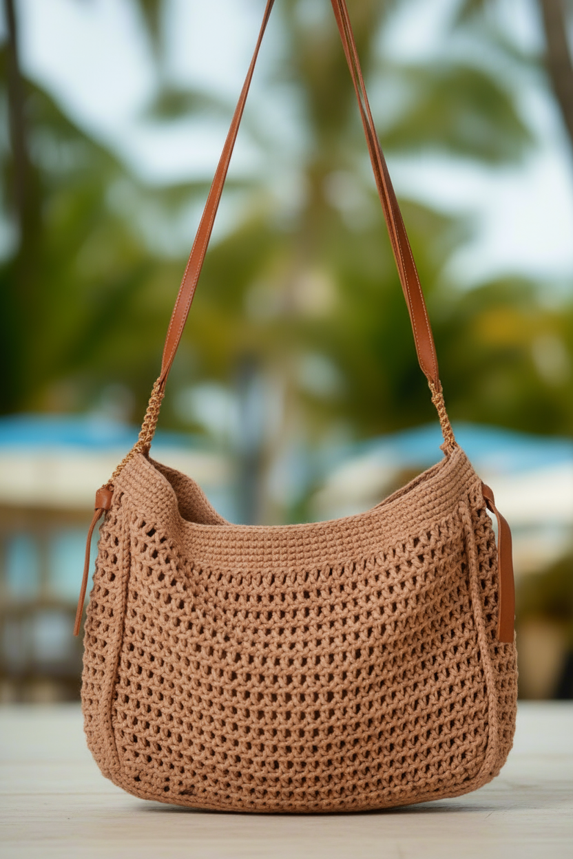 Rectangular Hazel Crochet Beach Handbag, zipper closure