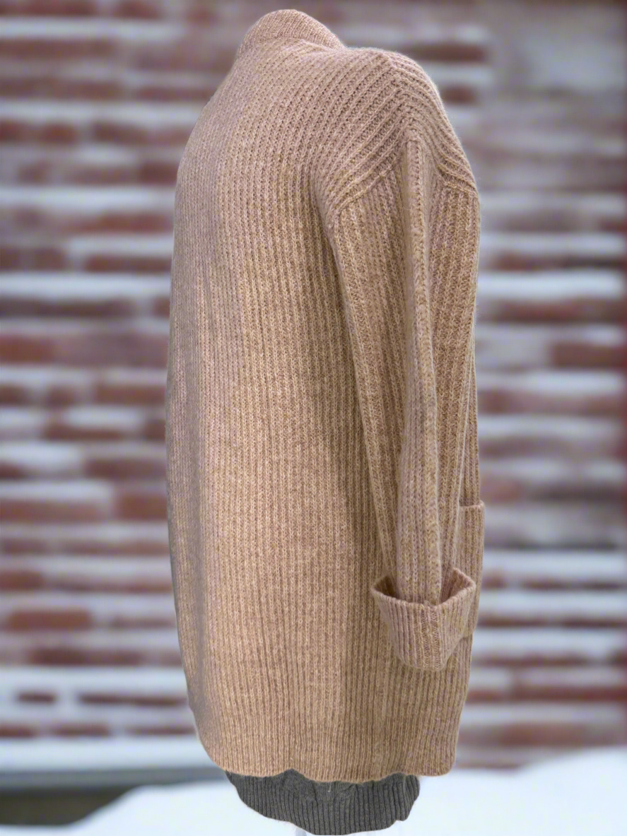 Cozy up in this oversized Knit Midi Cardigan in Beige.
